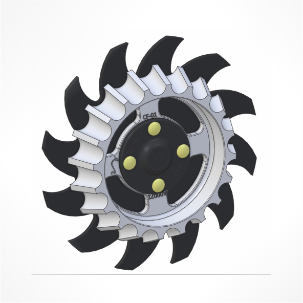 Floater Wheel with Curve Spike Assembly with separate Bearing Cap/Cover.